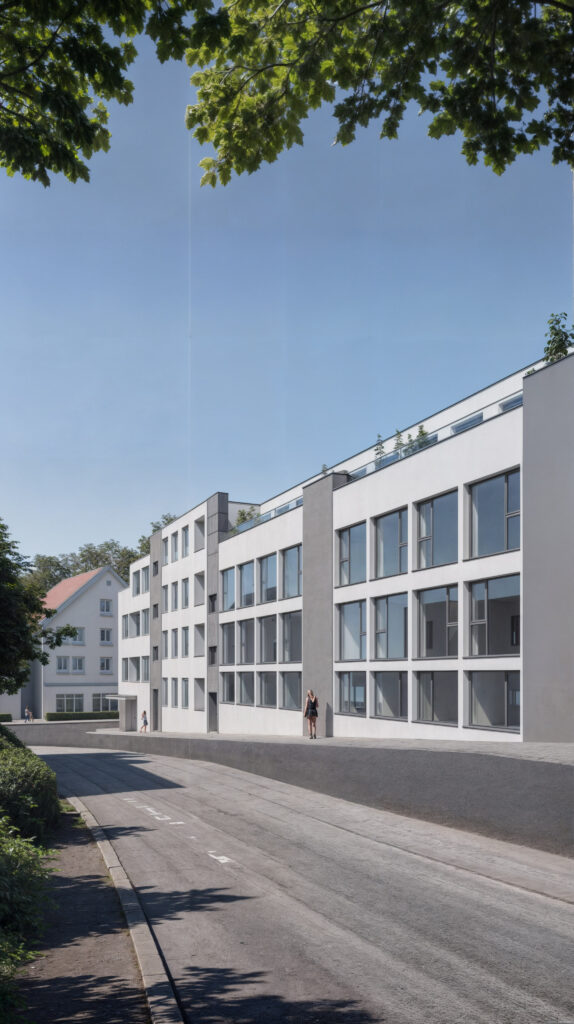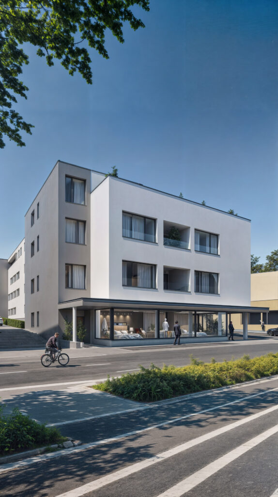 3D-Fassadenprojekt eines Gebäudes mit für Dienstleistungen vorgesehenen Räumen.