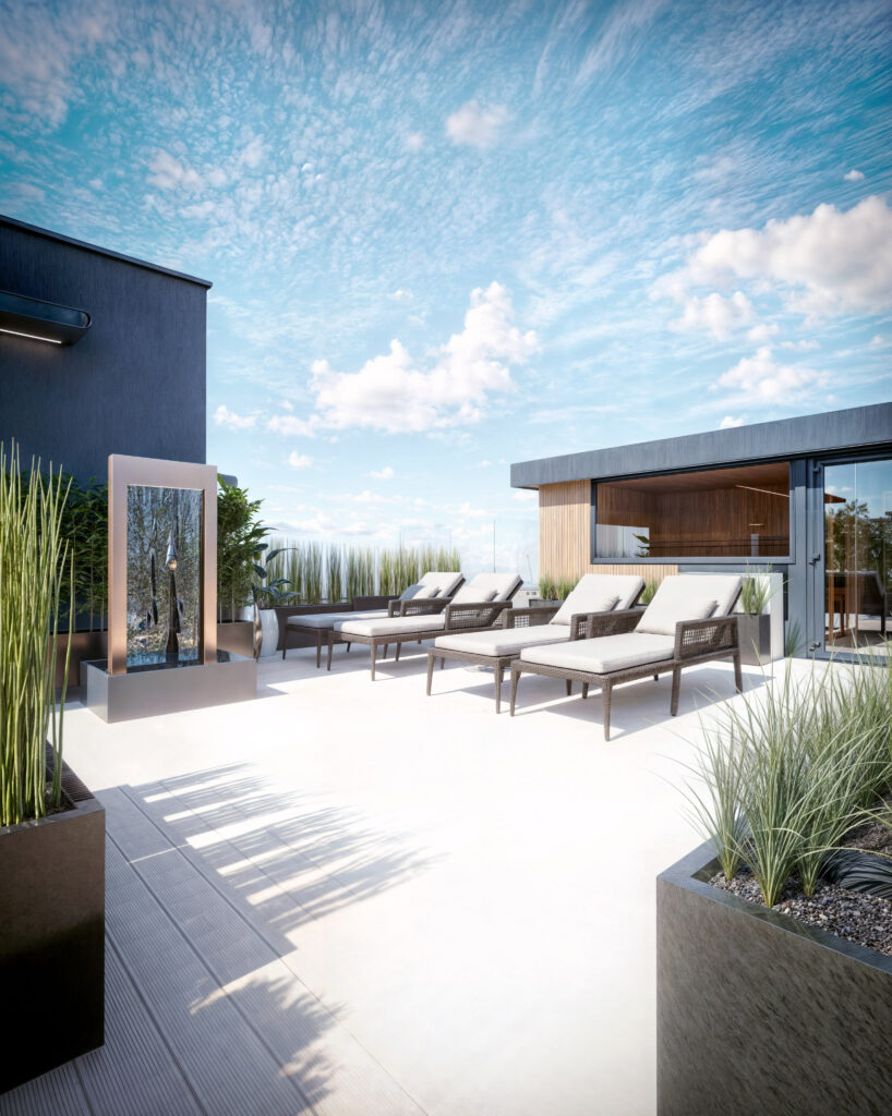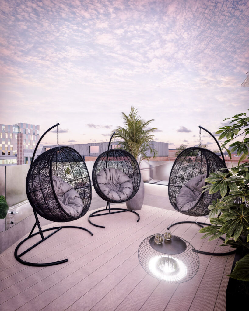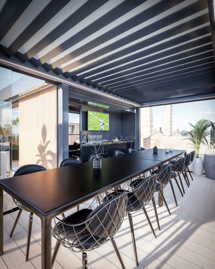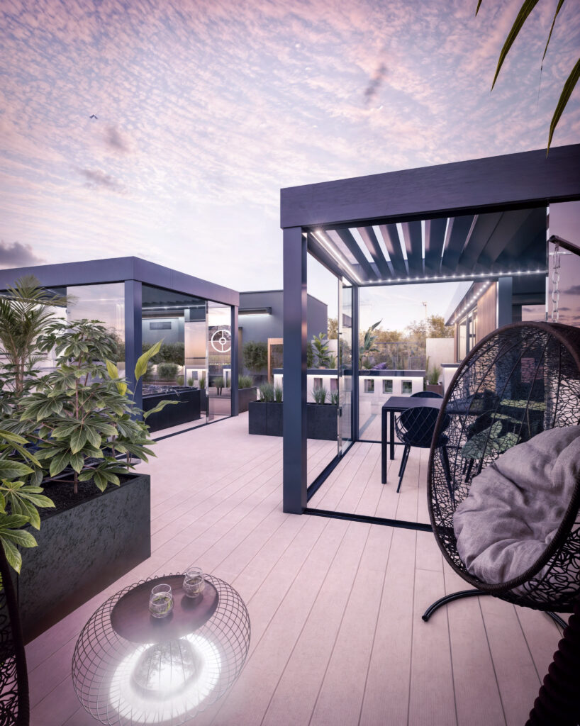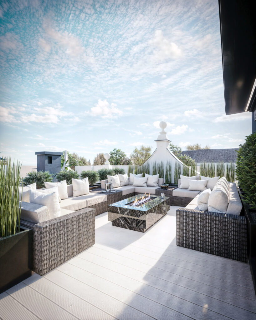 Luxuriöse Dachterrasse auf einem Stadthaus in Leszno, Polen.