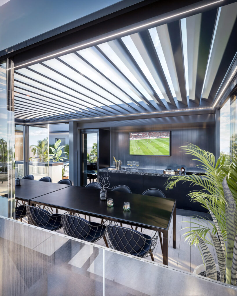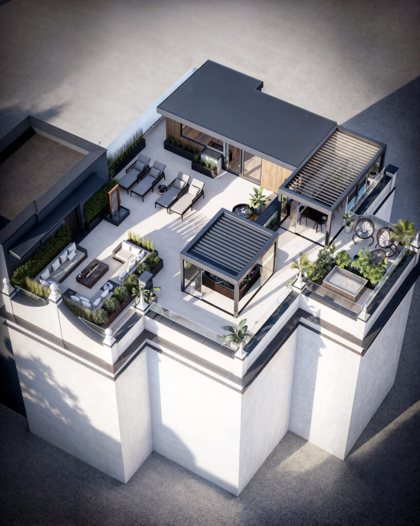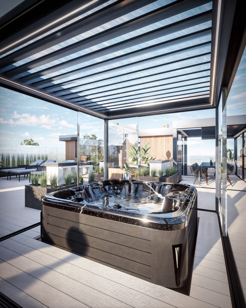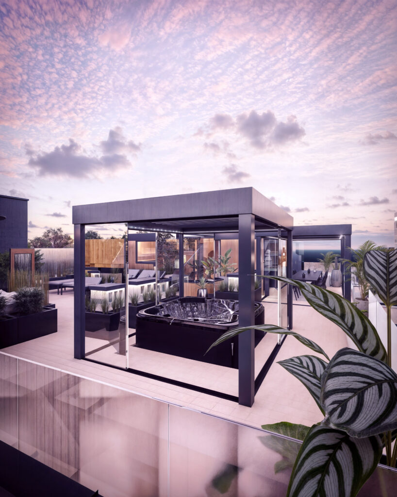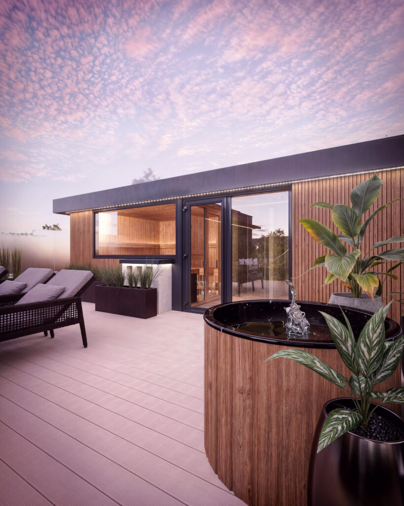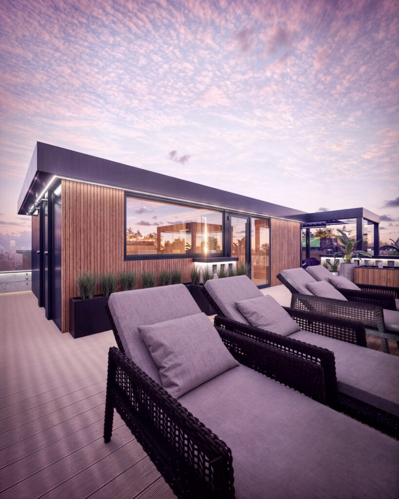 Luxuriöse Dachterrasse auf einem Stadthaus in Leszno, Polen.