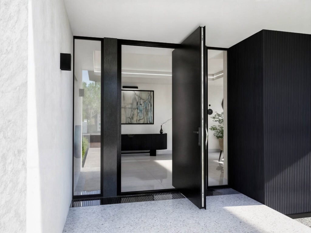 Fr entari.pl haben wir realistische 3D-Visualisierungen von Pivot-Tren erstellt von minimalistischen schwarzen Modellen bis zu eleganten silbernen Ausfhrungen. Animationen des ffnens und Schlieens zeigen die Funktionalitt und das auergewhnliche Design, das den Prestige jeder Investition unterstreicht.