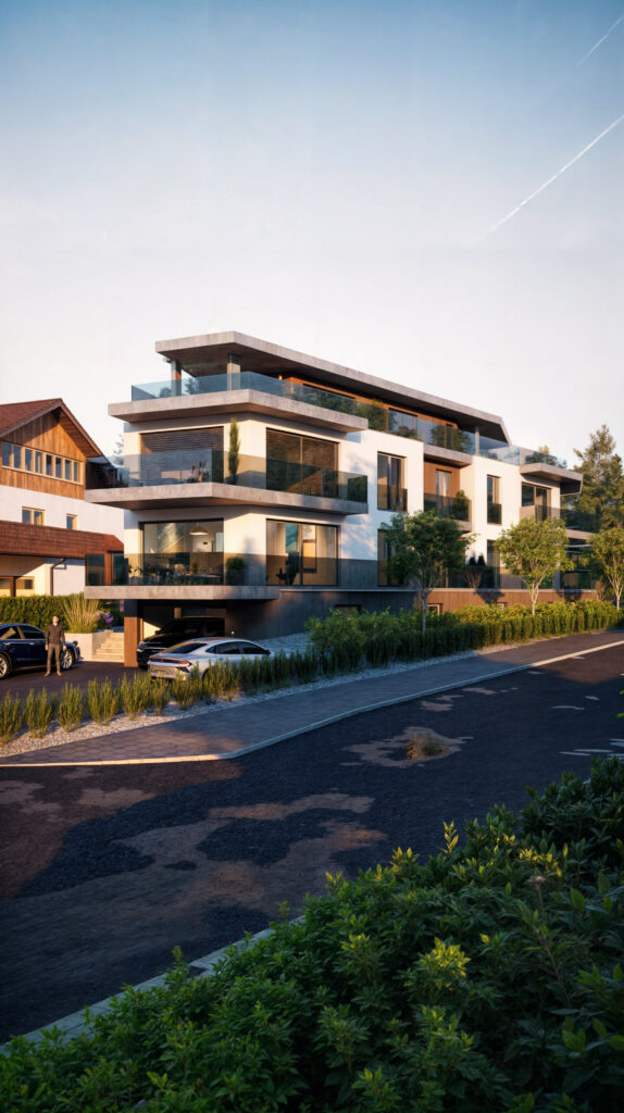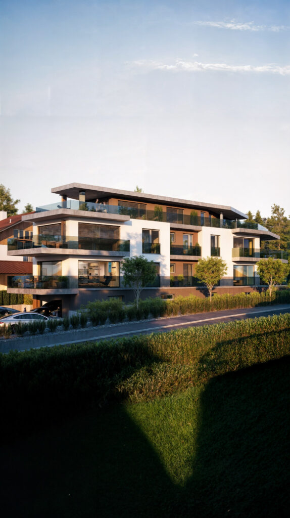 3D-Visualisierungen helfen Investoren zu sehen, wie das Mehrfamilienhaus nach der Fertigstellung aussehen wird, was wichtige Entscheidungen in der Design- und Planungsphase erleichtert. Moderne architektonische Lösungen machen dieses Projekt ideal für Investoren und künftige Bewohner gleichermaßen und bieten einen komfortablen und stilvollen Lebensraum in der malerischen Lage von Lausen.