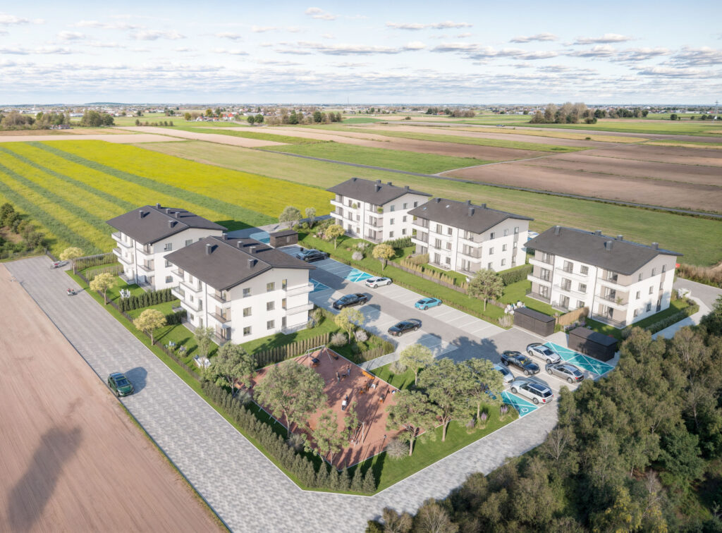 Drohnenhnliche Perspektiven ermglichen einen vollstndigen Blick auf die Siedlung und zeigen im Detail die Anordnung der Gebude, Grnflchen und Infrastruktur. So lsst sich die Atmosphre der Investition spren und erkennen, wie harmonisch sie in den umgebenden Landschaftsraum eingebettet wurde.