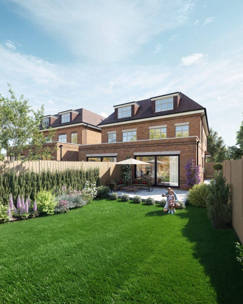 Diese 3D-Visualisierungen zeigen moderne Backstein-Reihenhäuser in Guildford. Die von 3d-archi.com erstellten Renderings betonen Fassadendetails, liebevoll gestaltete Gärten und die harmonische Einbindung in das Straßenbild. Unsere fotorealistischen CGI-Renderings unterstützen Entwickler und Architekten dabei, ihre Projekte bereits in der Planungsphase überzeugend zu vermarkten.