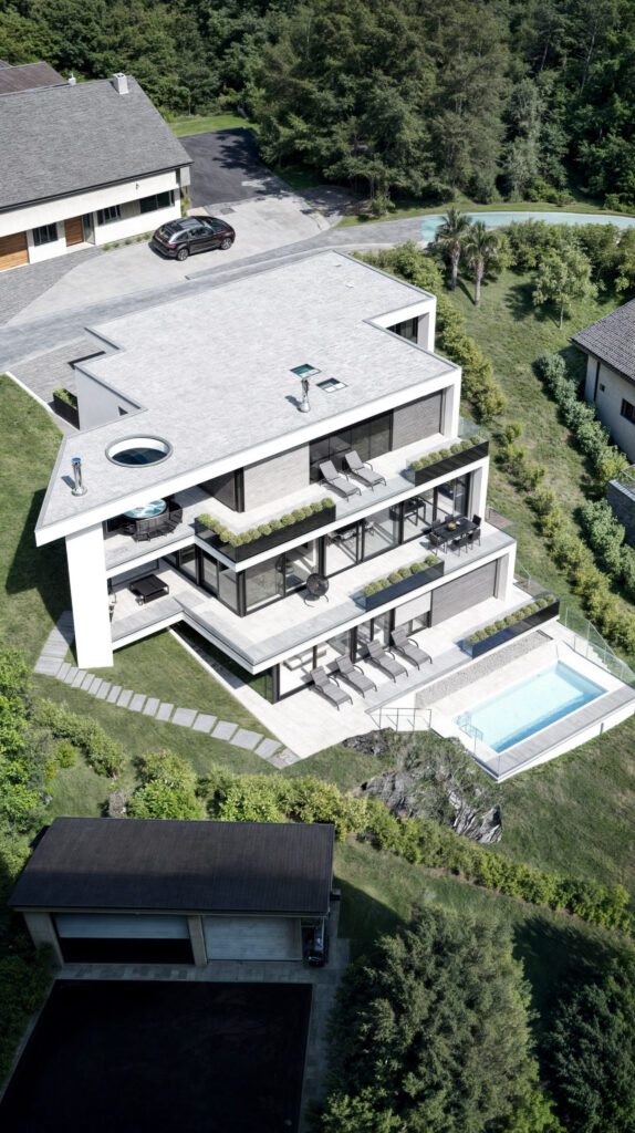 Virtuelle Bilder des Projekts, die sich harmonisch in die malerische Umgebung einfügen.